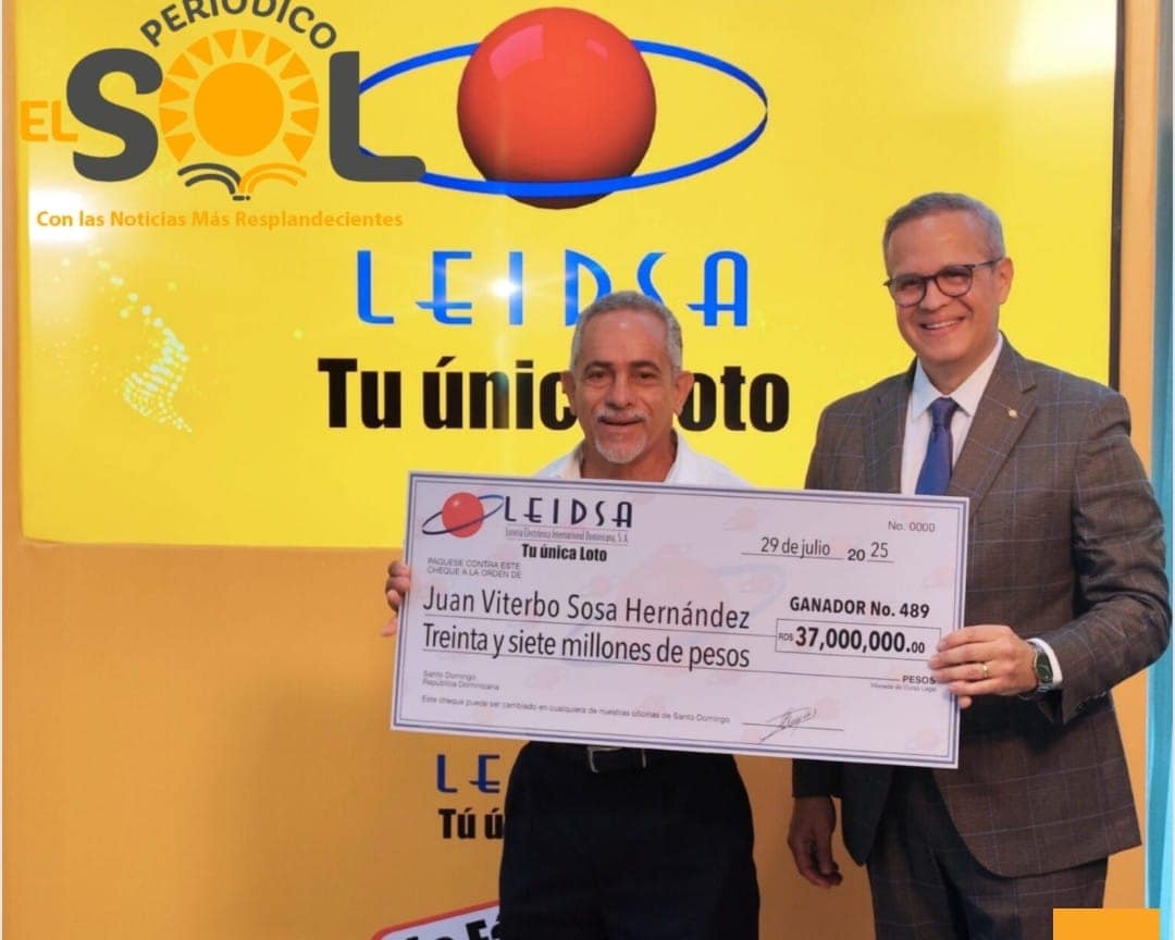 Santo Domingo.– La Lotería Electrónica Internacional Dominicana, S.A. (LEIDSA), entregó un cheque por 37 millones de pesos al señor Juan…