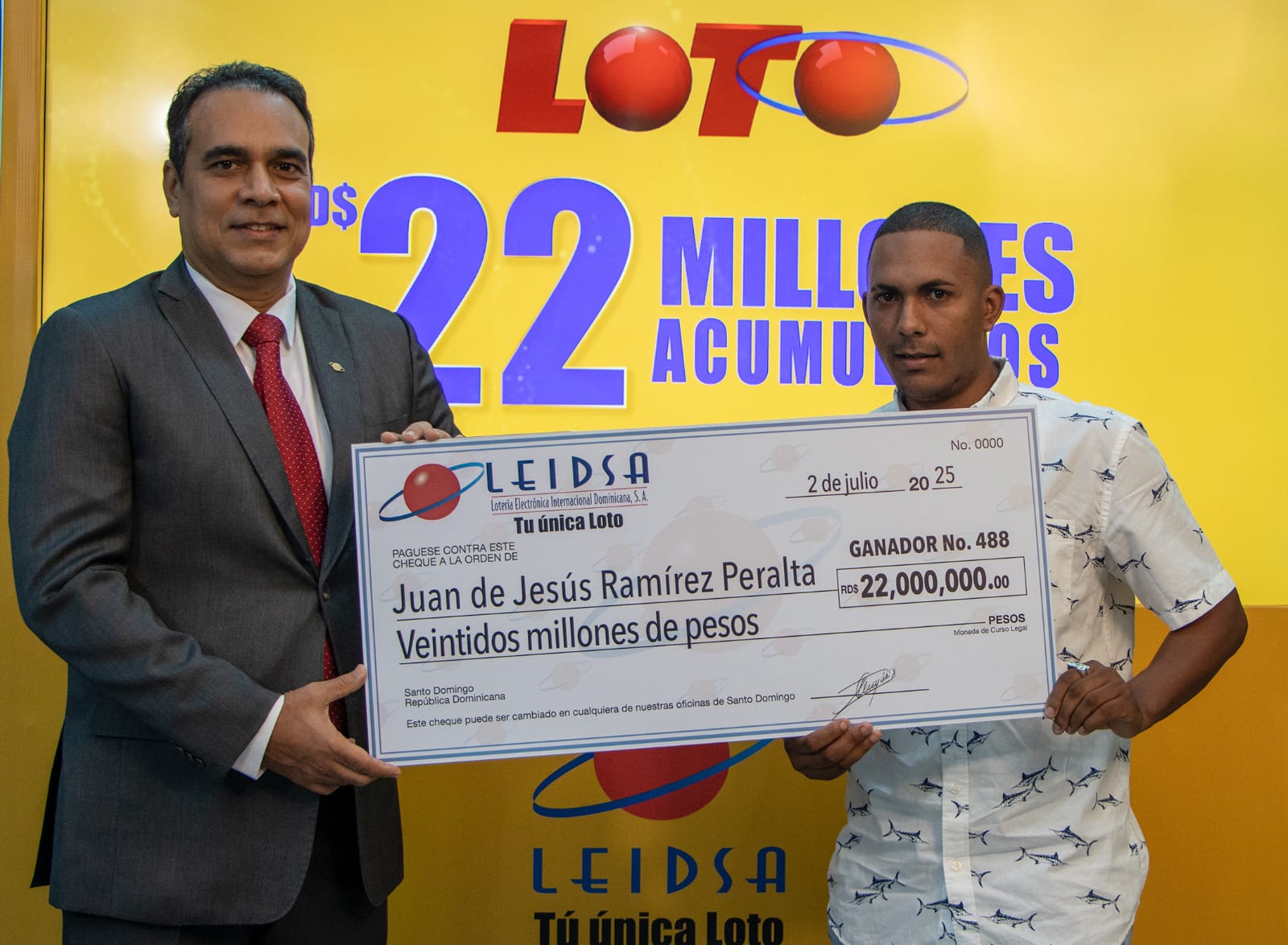 La Lotería Electrónica Internacional Dominicana, S.A. (LEIDSA), entregó un cheque de 22 millones de pesos al joven Juan de Jesús…
