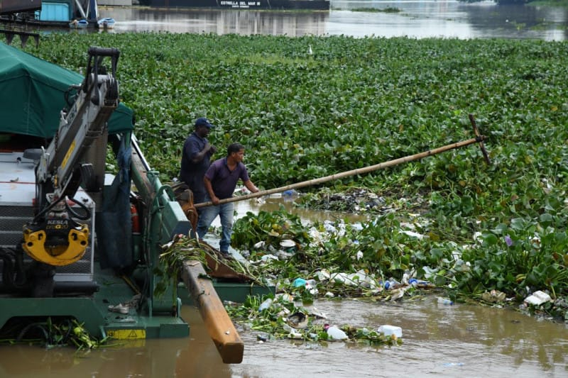 Las labores de limpieza continuaron este sábado en el Puente Flotante situado entre el Distrito Nacional y Santo Domingo Este,…